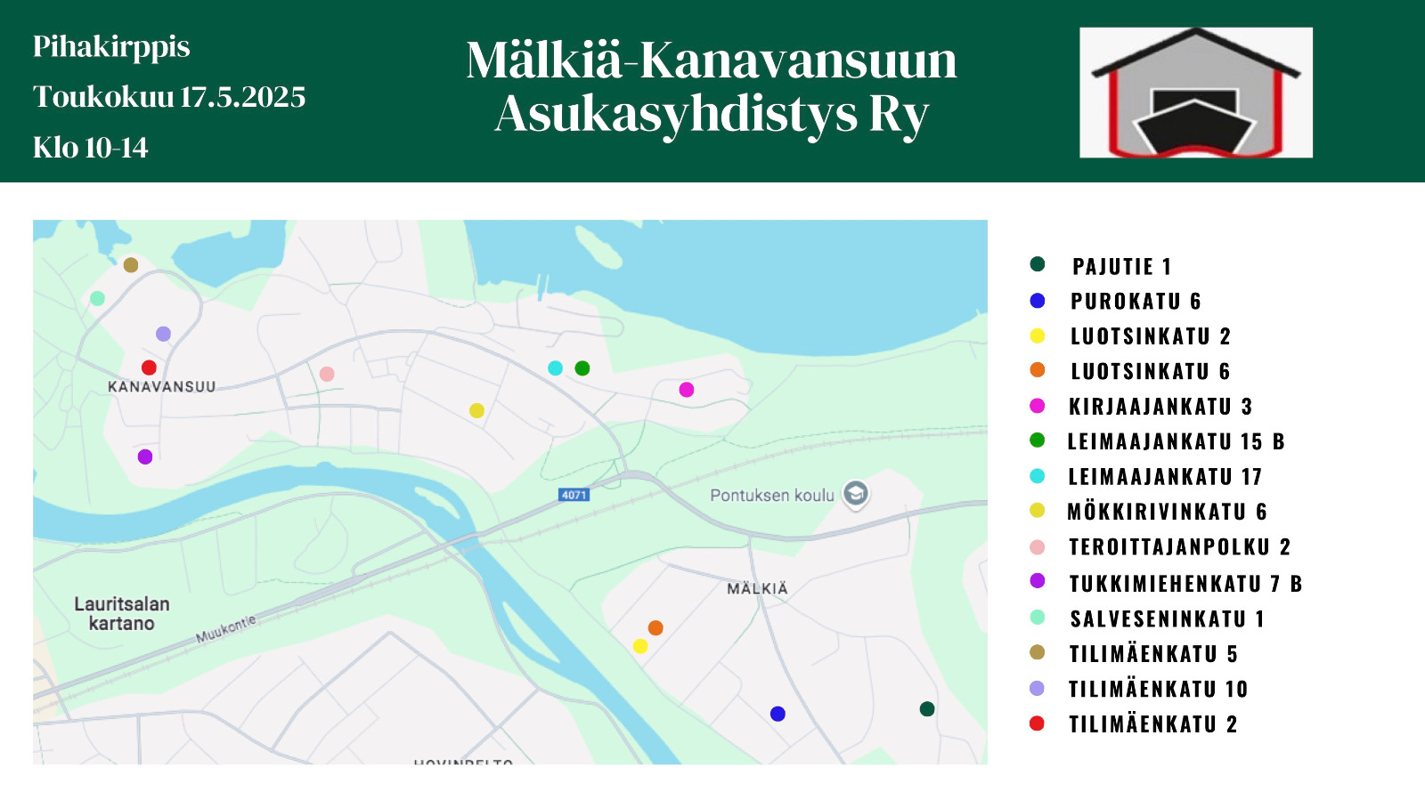 Lauantain 17.5. pihakirppistapahtuman osallistujakartta on ladattavissa täältä.